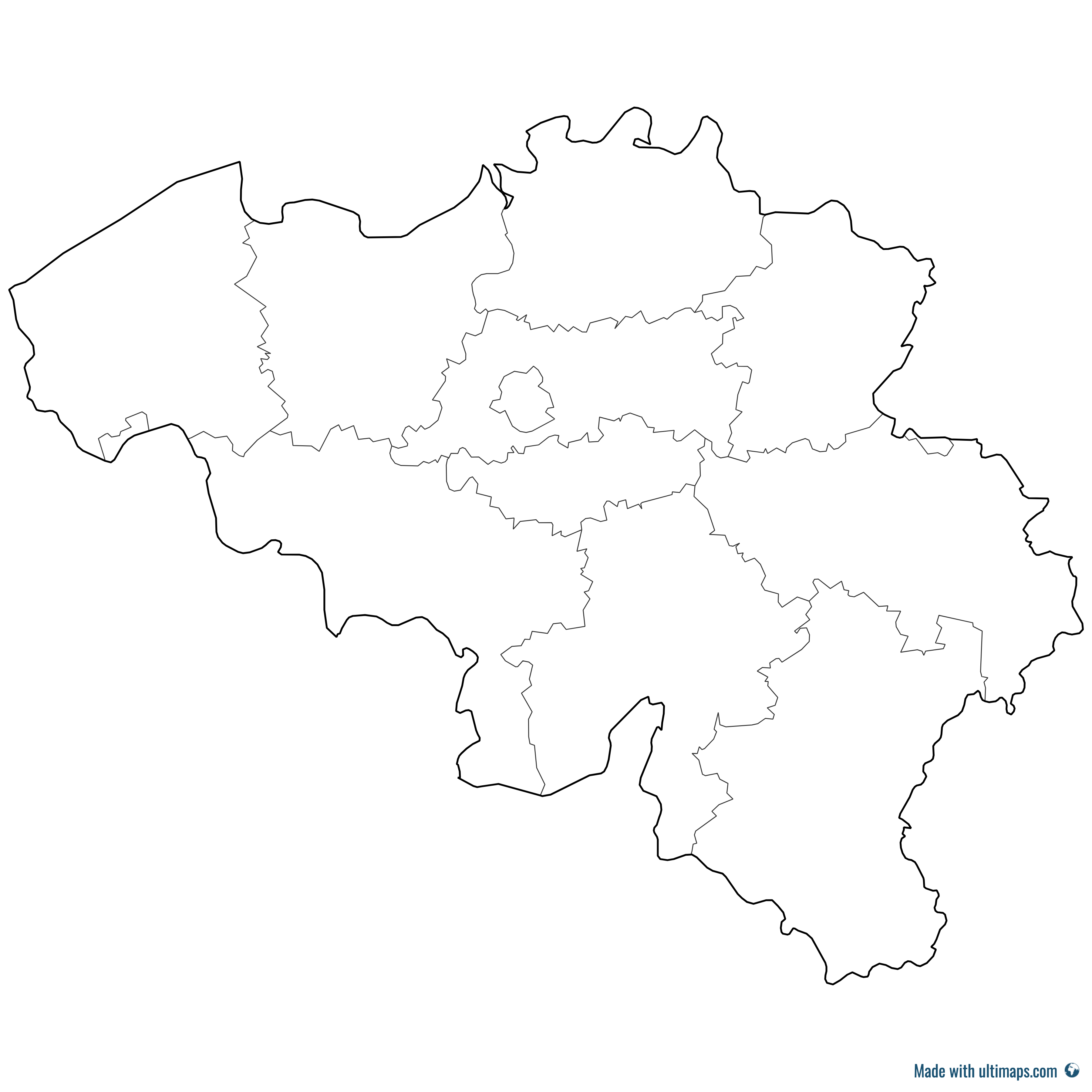 Below you can download free blank Map of Belgium Provinces in high resolution PNG or SVG formats suitable for printing or further editing. Most of the maps available in different color schemes and with different features (such as labels, roads or rivers). PNG maps are in 3600x3600px resolution and come with a transparent background.