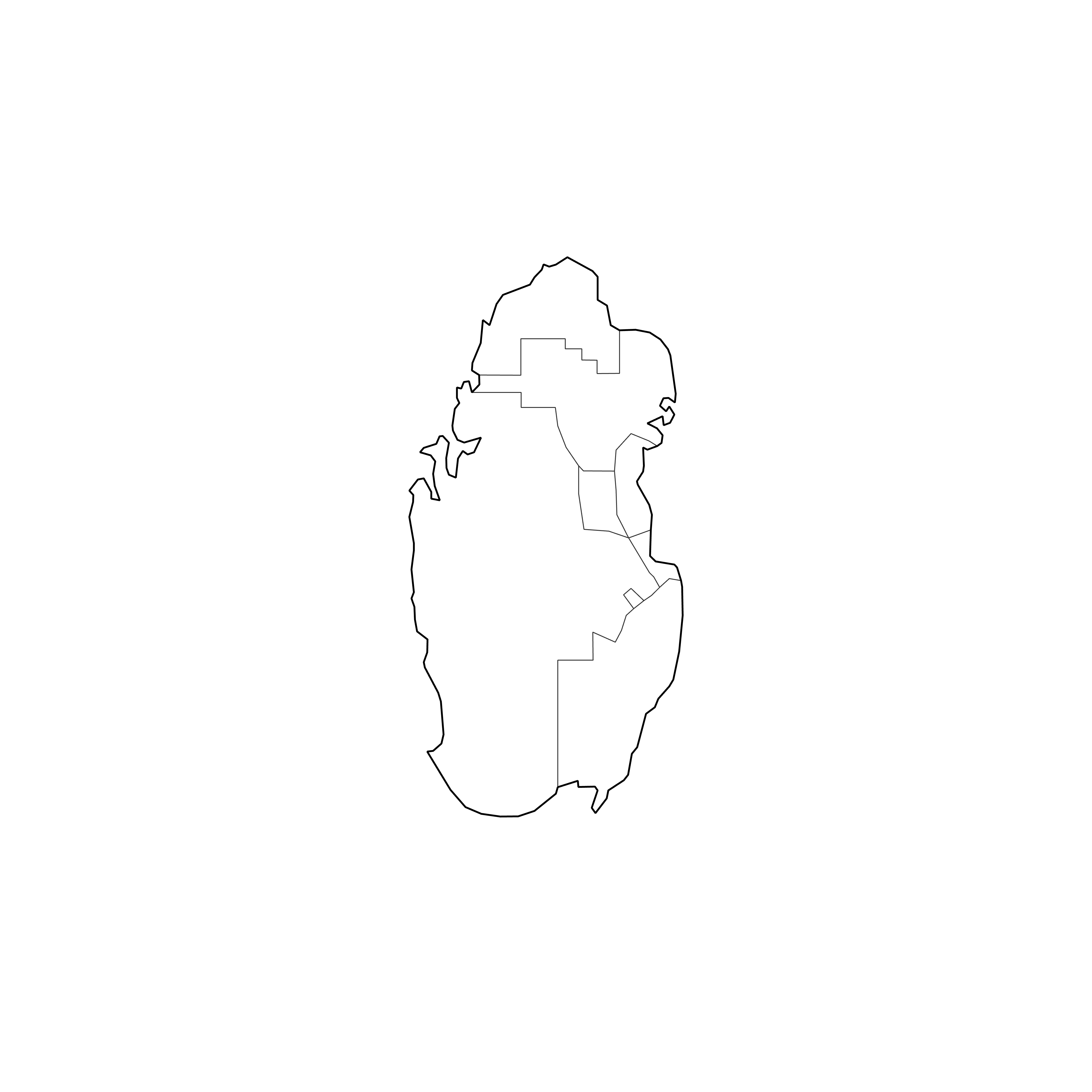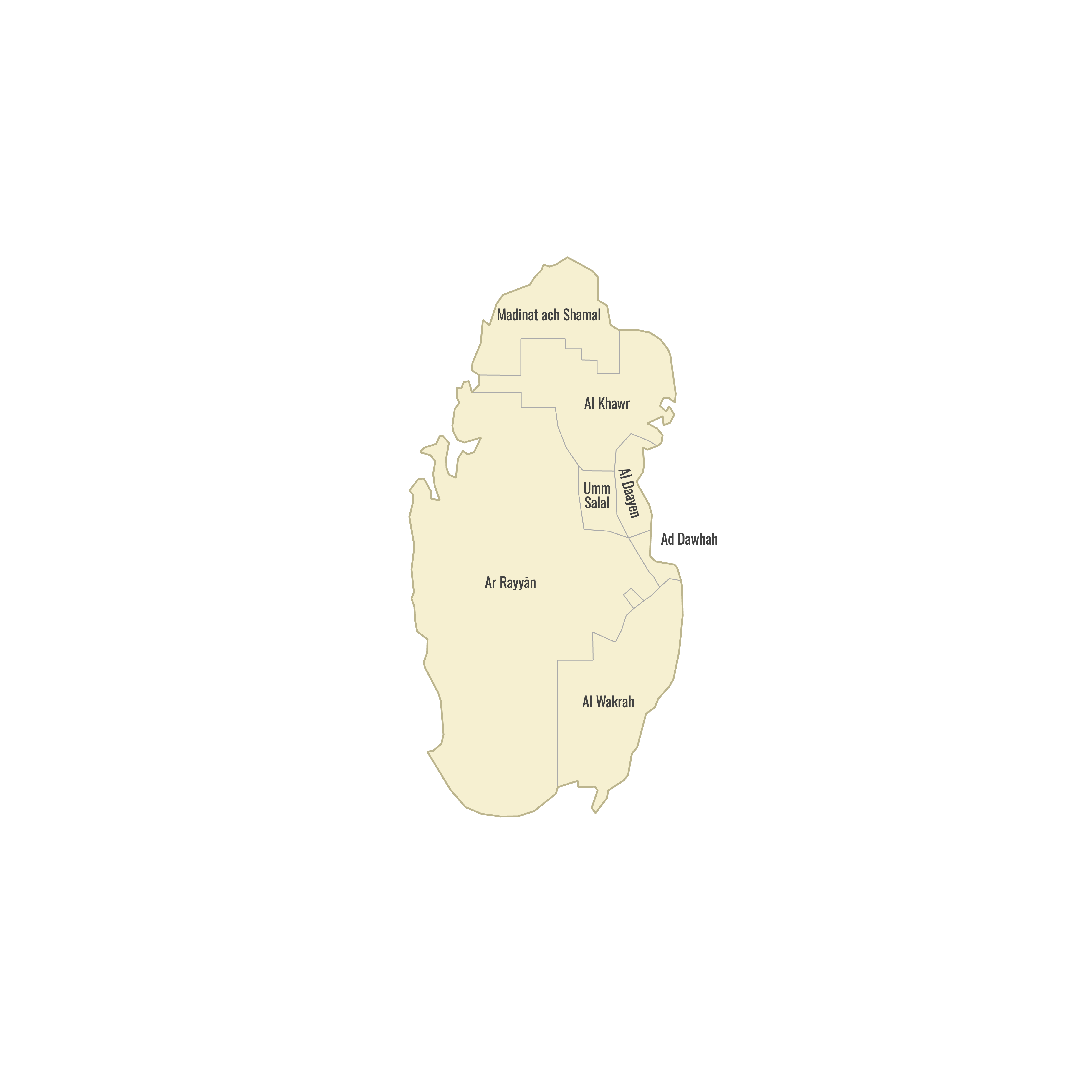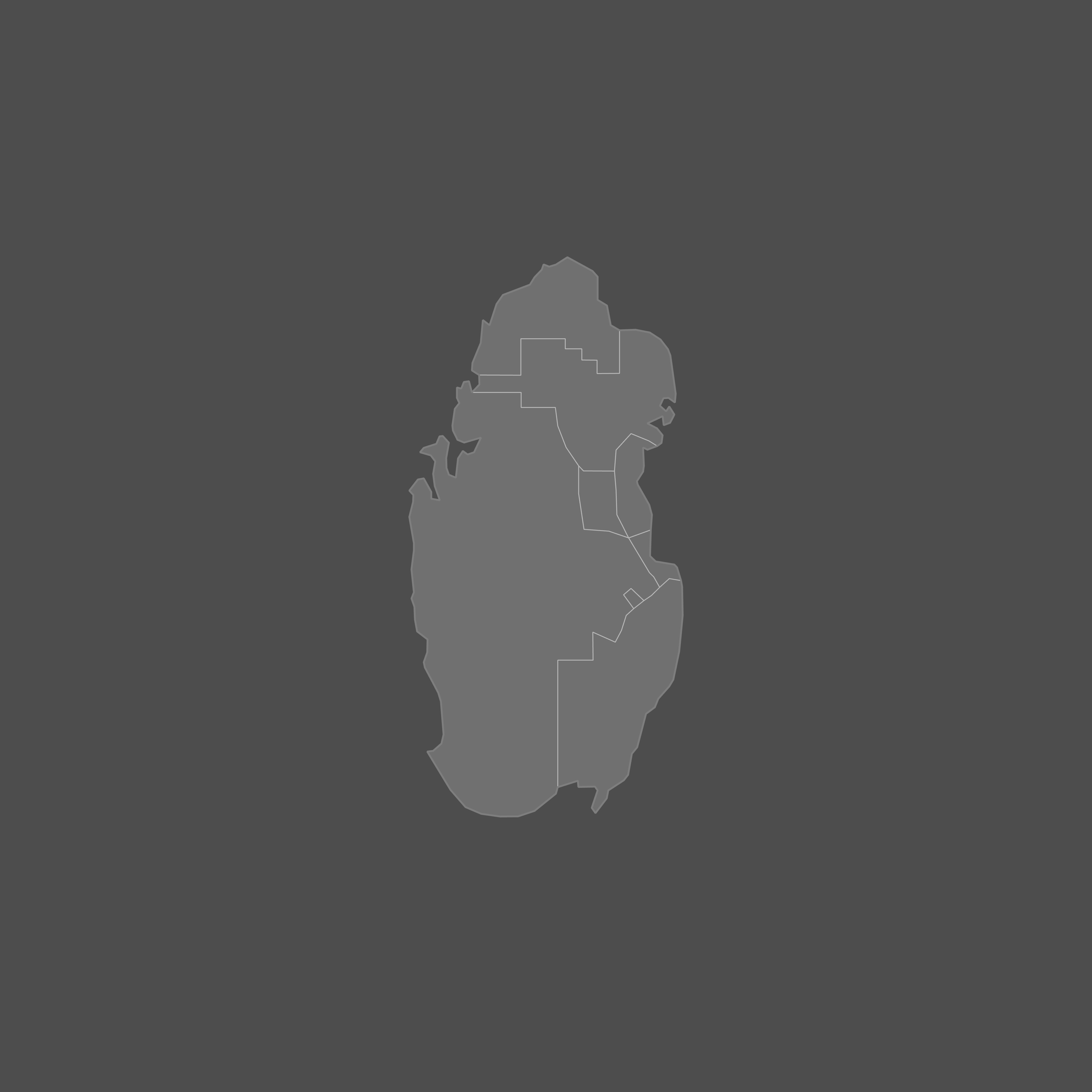 Below you can download free blank Map of Qatar Municipalities in high resolution PNG or SVG formats suitable for printing or further editing. Most of the maps available in different color schemes and with different features (such as labels, roads or rivers). PNG maps are in 3600x3600px resolution and come with a transparent background.