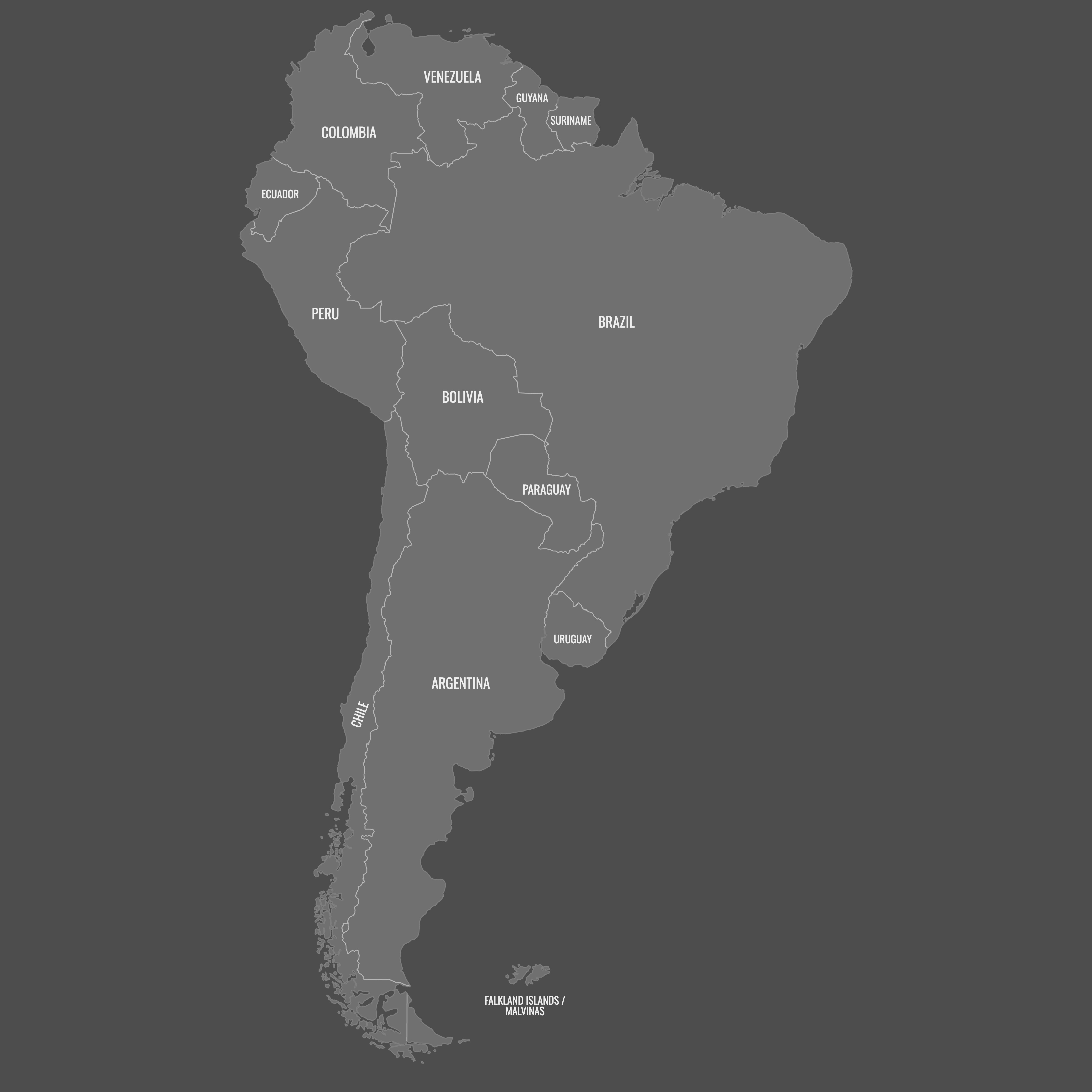 Below you can download free blank Map of South America in high resolution PNG or SVG formats suitable for printing or further editing. Most of the maps available in different color schemes and with different features (such as labels, roads or rivers). PNG maps are in 3600x3600px resolution and come with a transparent background.