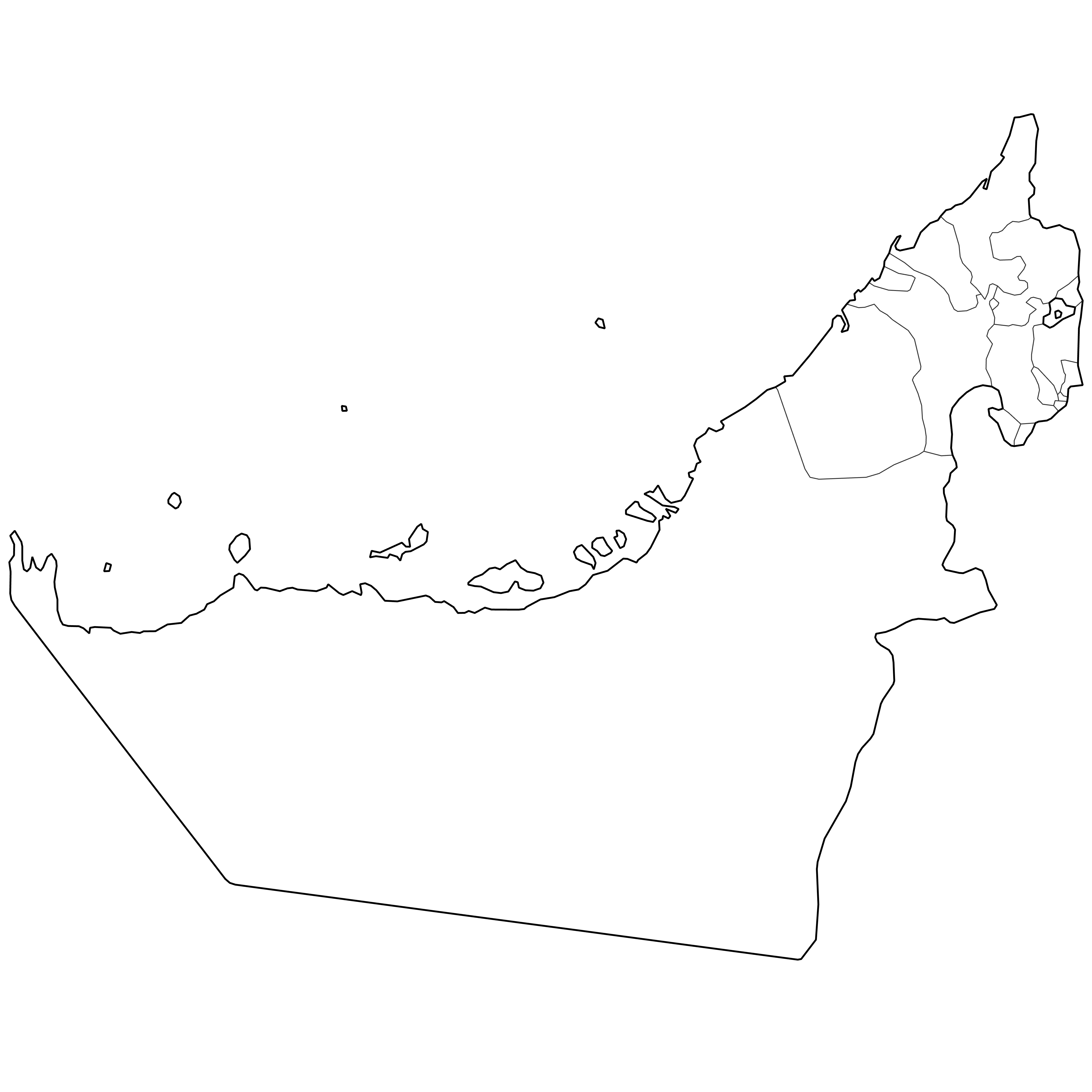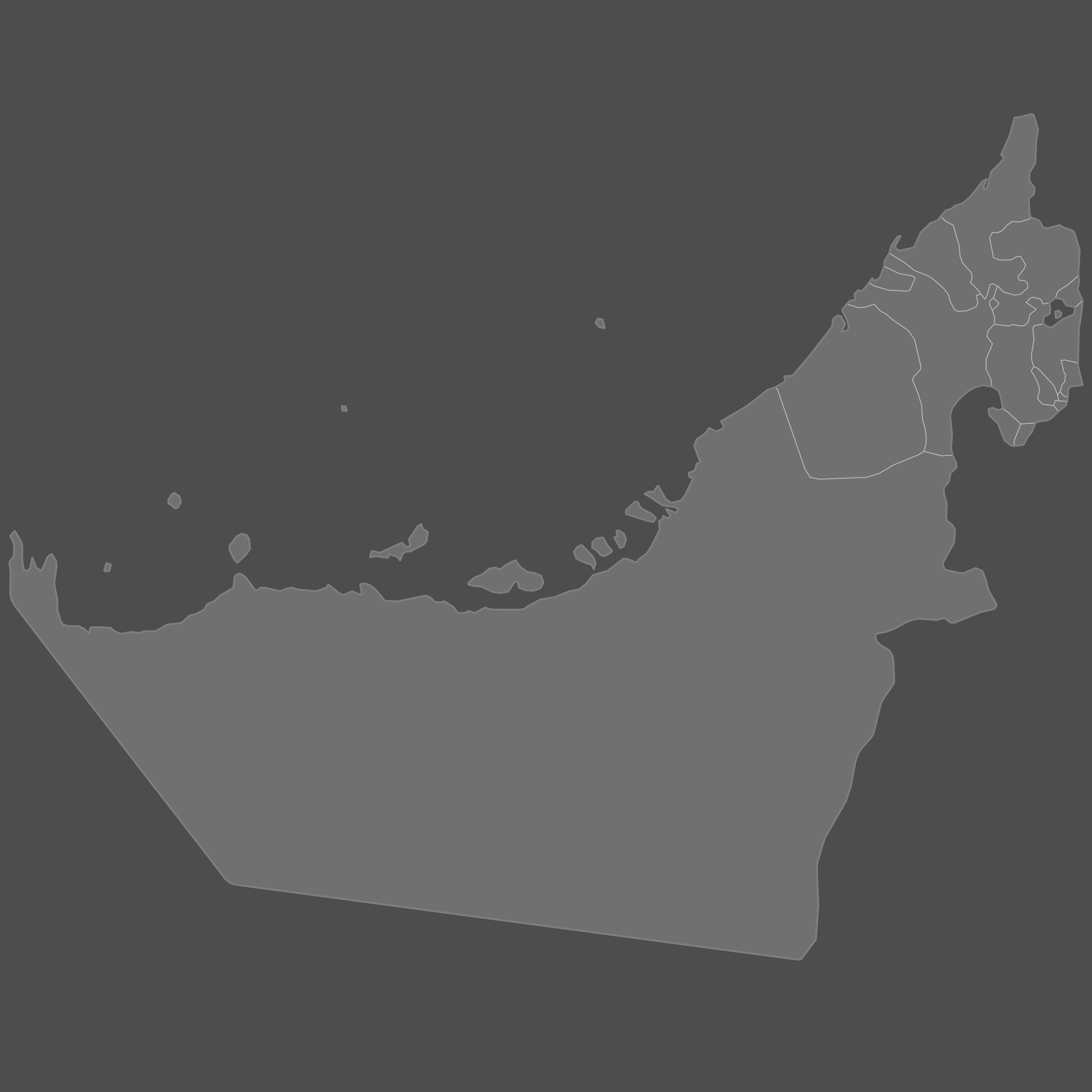 Below you can download free blank Map of United Arab Emirates in high resolution PNG or SVG formats suitable for printing or further editing. Most of the maps available in different color schemes and with different features (such as labels, roads or rivers). PNG maps are in 3600x3600px resolution and come with a transparent background.