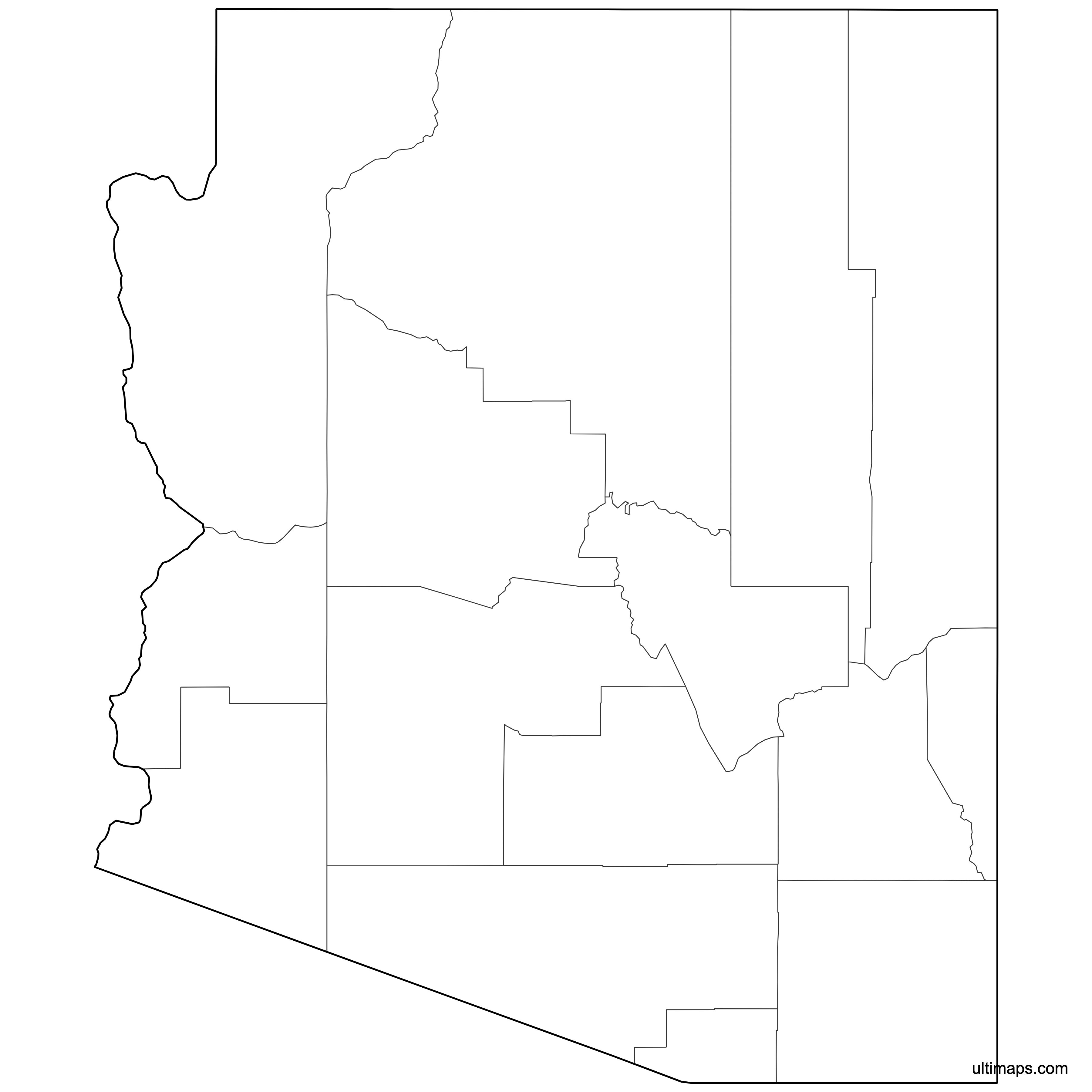 Below you can download free blank Map of Arizona Counties in high resolution PNG or SVG formats suitable for printing or further editing. Most of the maps available in different color schemes and with different features (such as labels, roads or rivers). PNG maps are in 3600x3600px resolution and come with a transparent background.