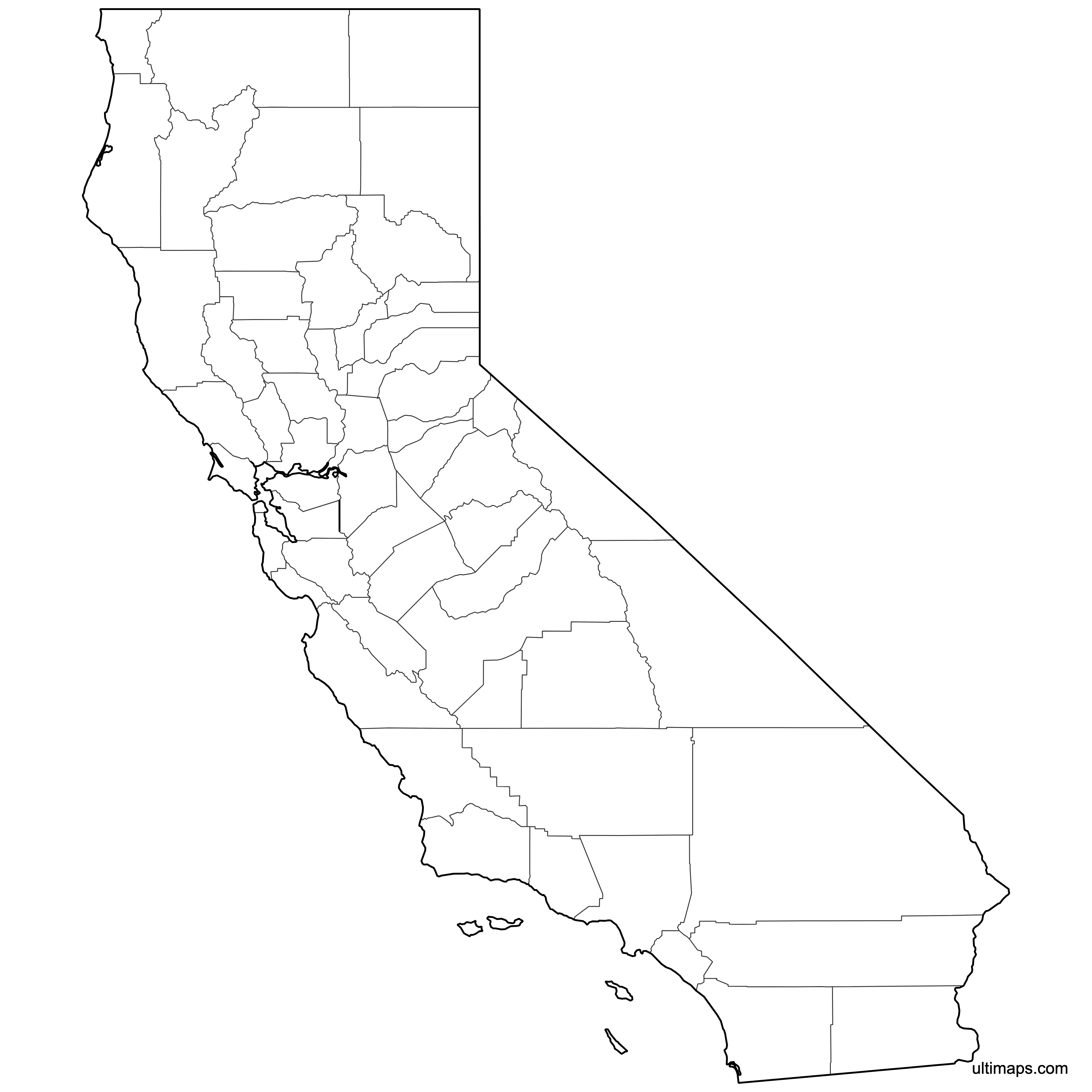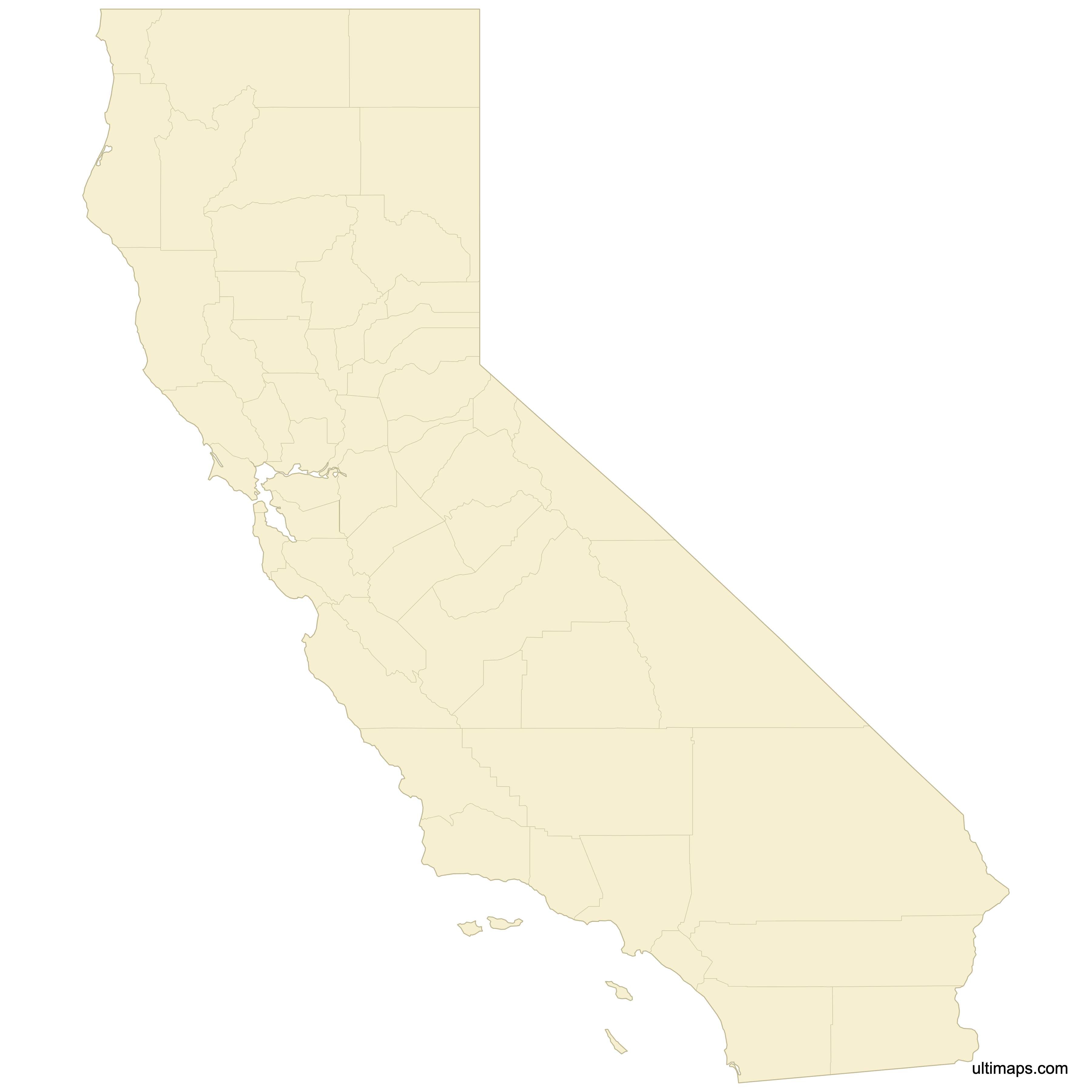 Below you can download free blank Map of California Counties in high resolution PNG or SVG formats suitable for printing or further editing. Most of the maps available in different color schemes and with different features (such as labels, roads or rivers). PNG maps are in 3600x3600px resolution and come with a transparent background.