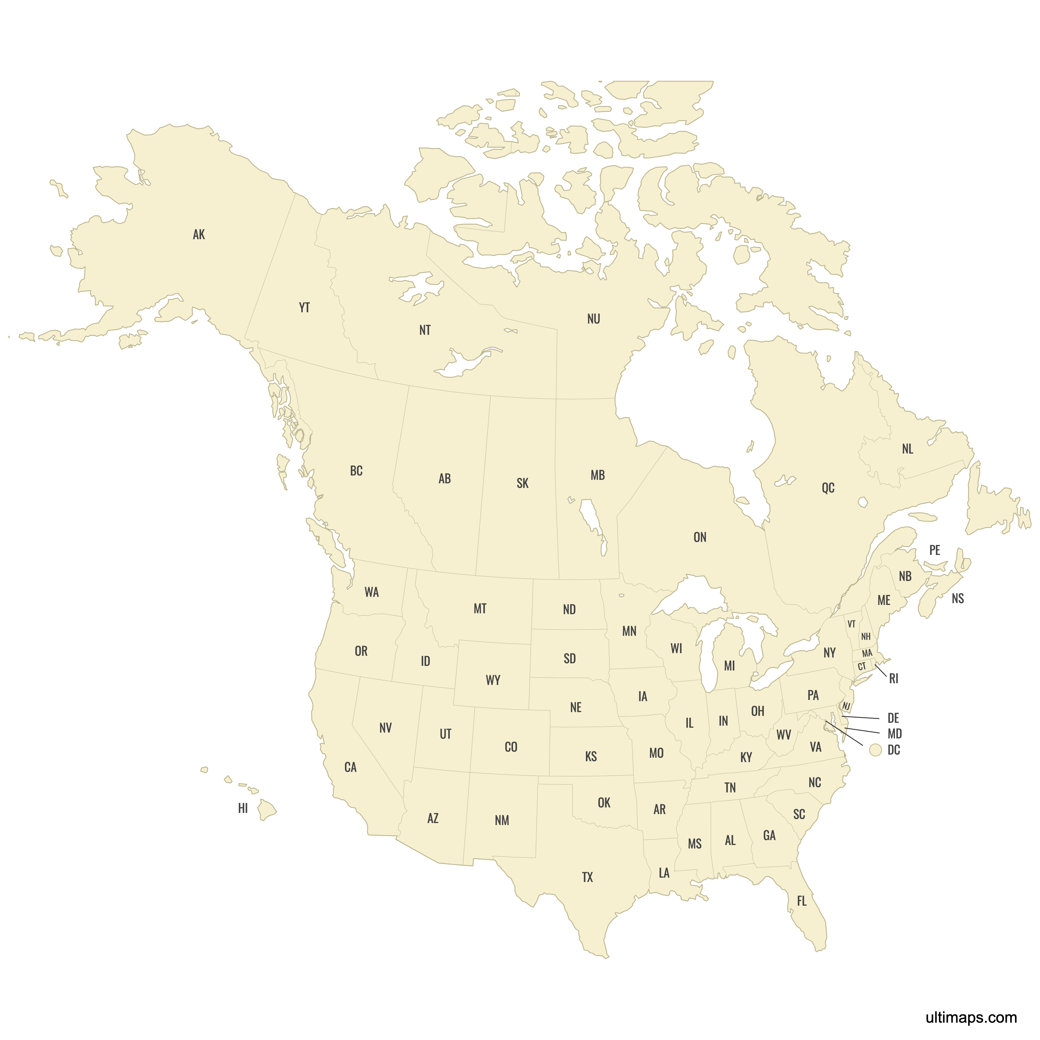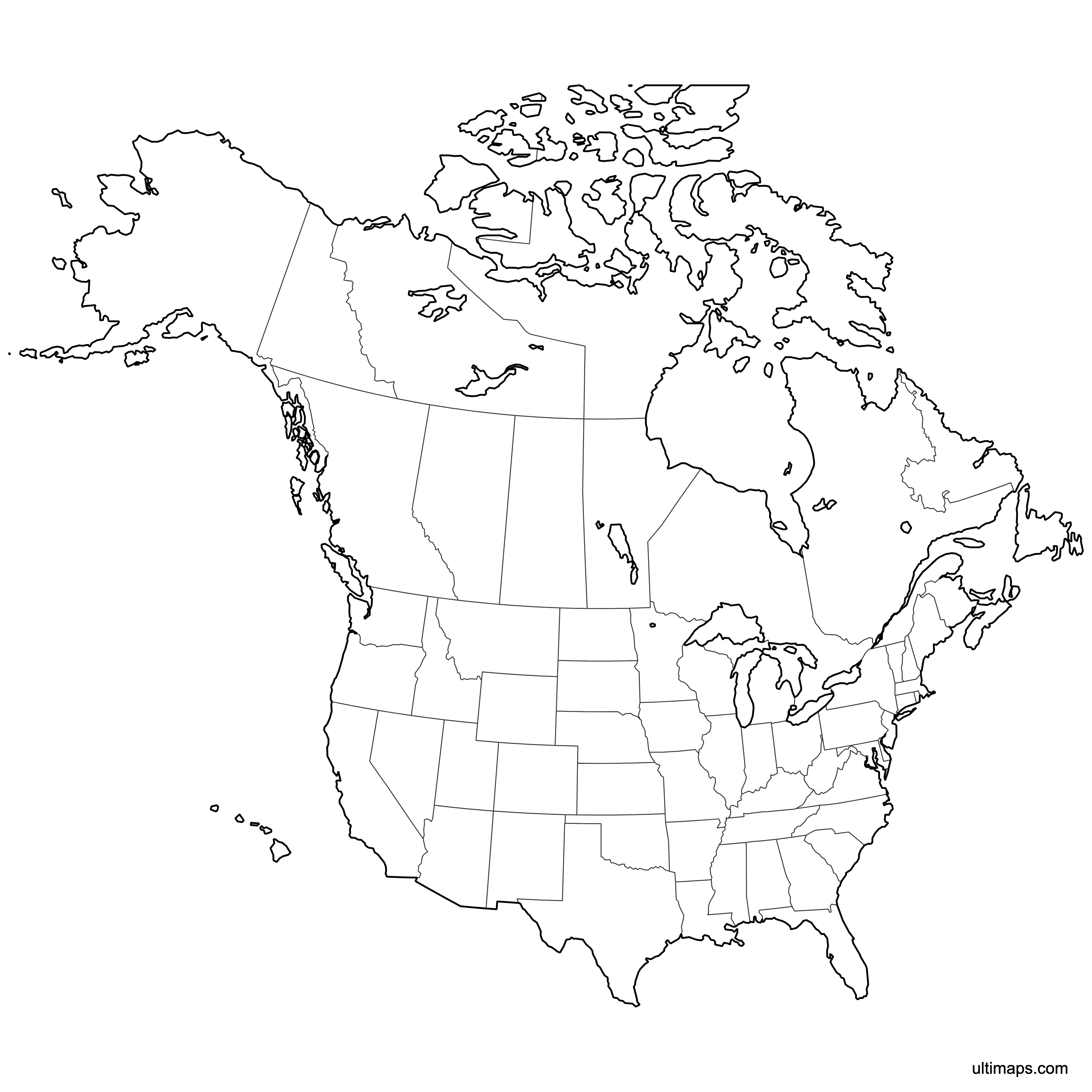 Below you can download free blank United States and Canada Map in high resolution PNG or SVG formats suitable for printing or further editing. Most of the maps available in different color schemes and with different features (such as labels, roads or rivers). PNG maps are in 3600x3600px resolution and come with a transparent background.
