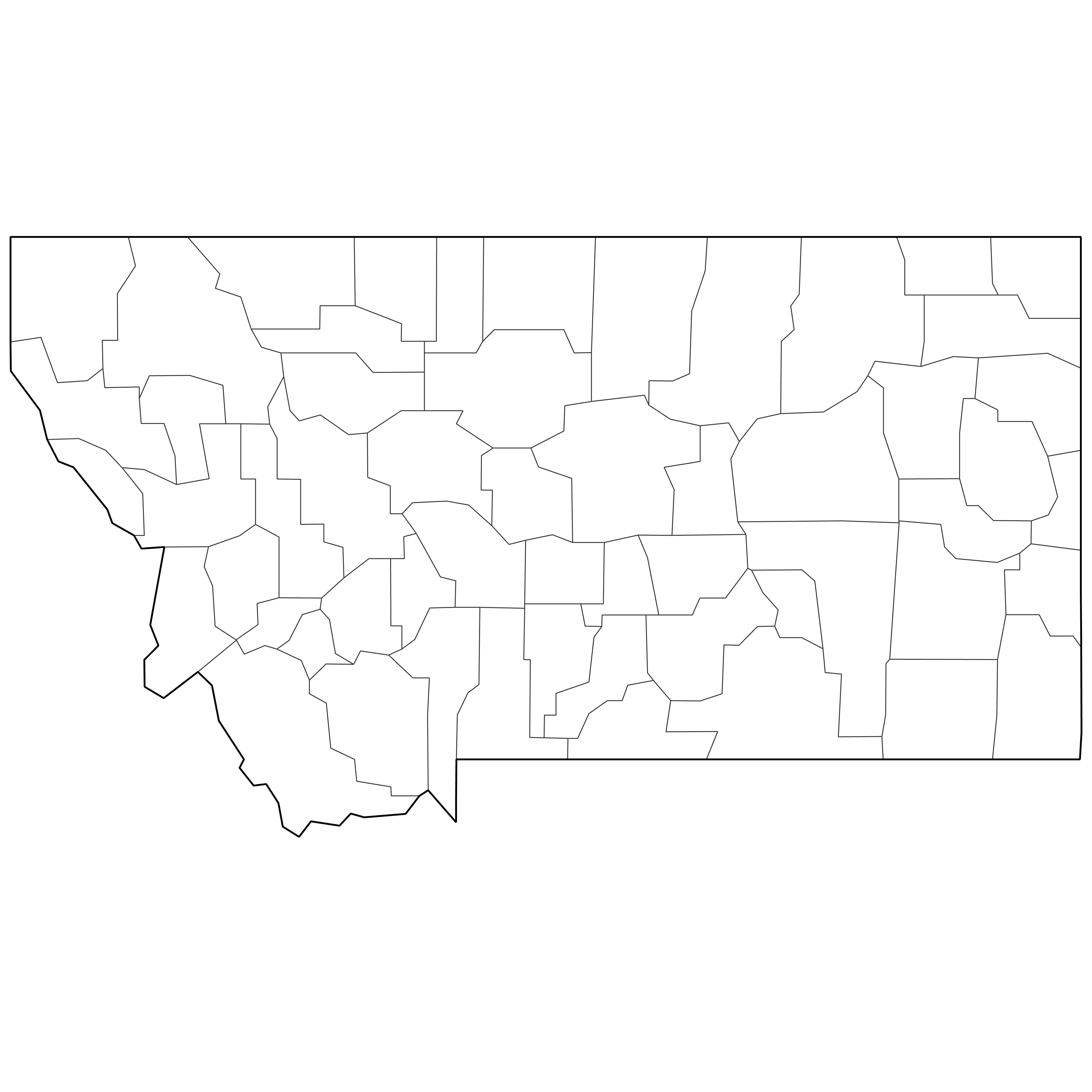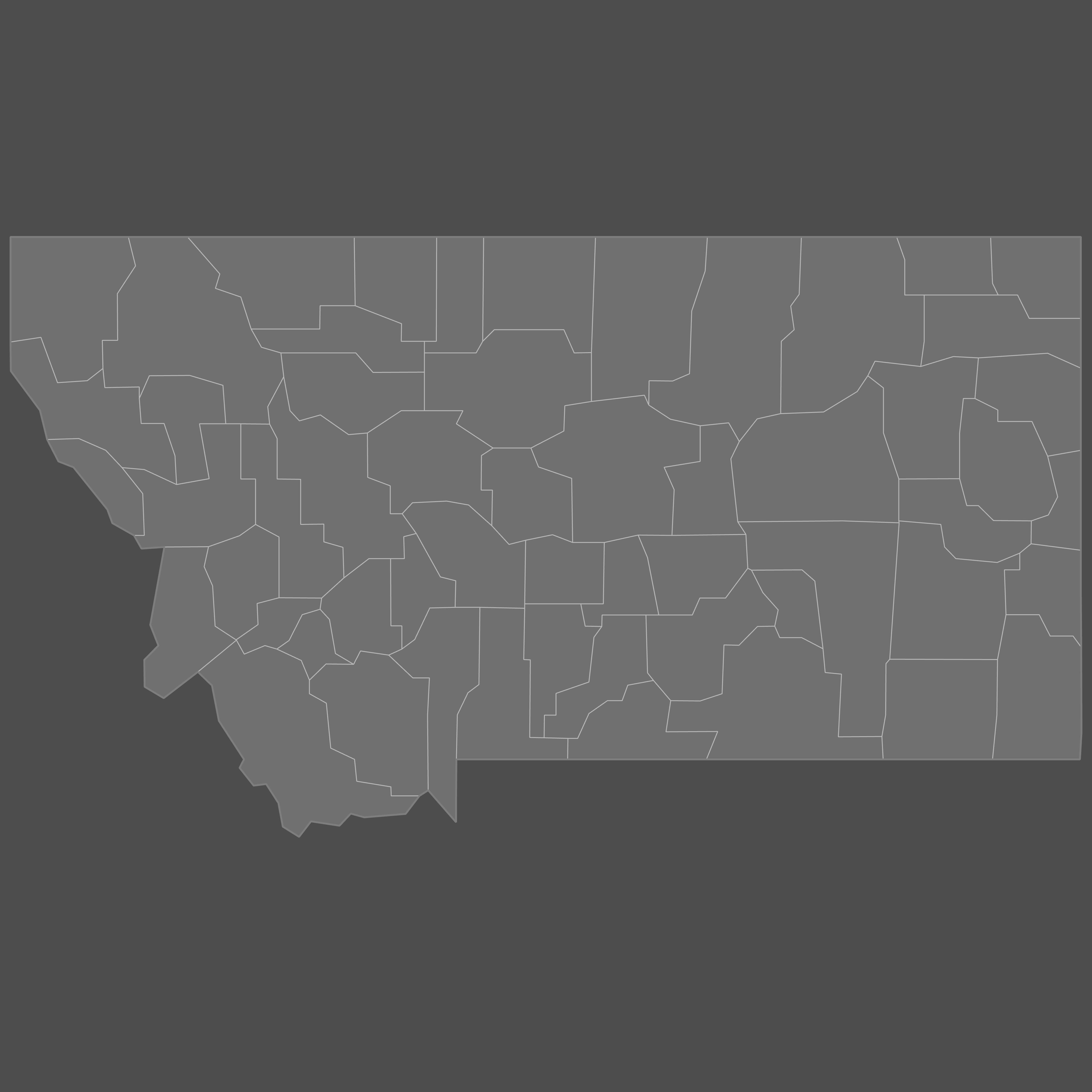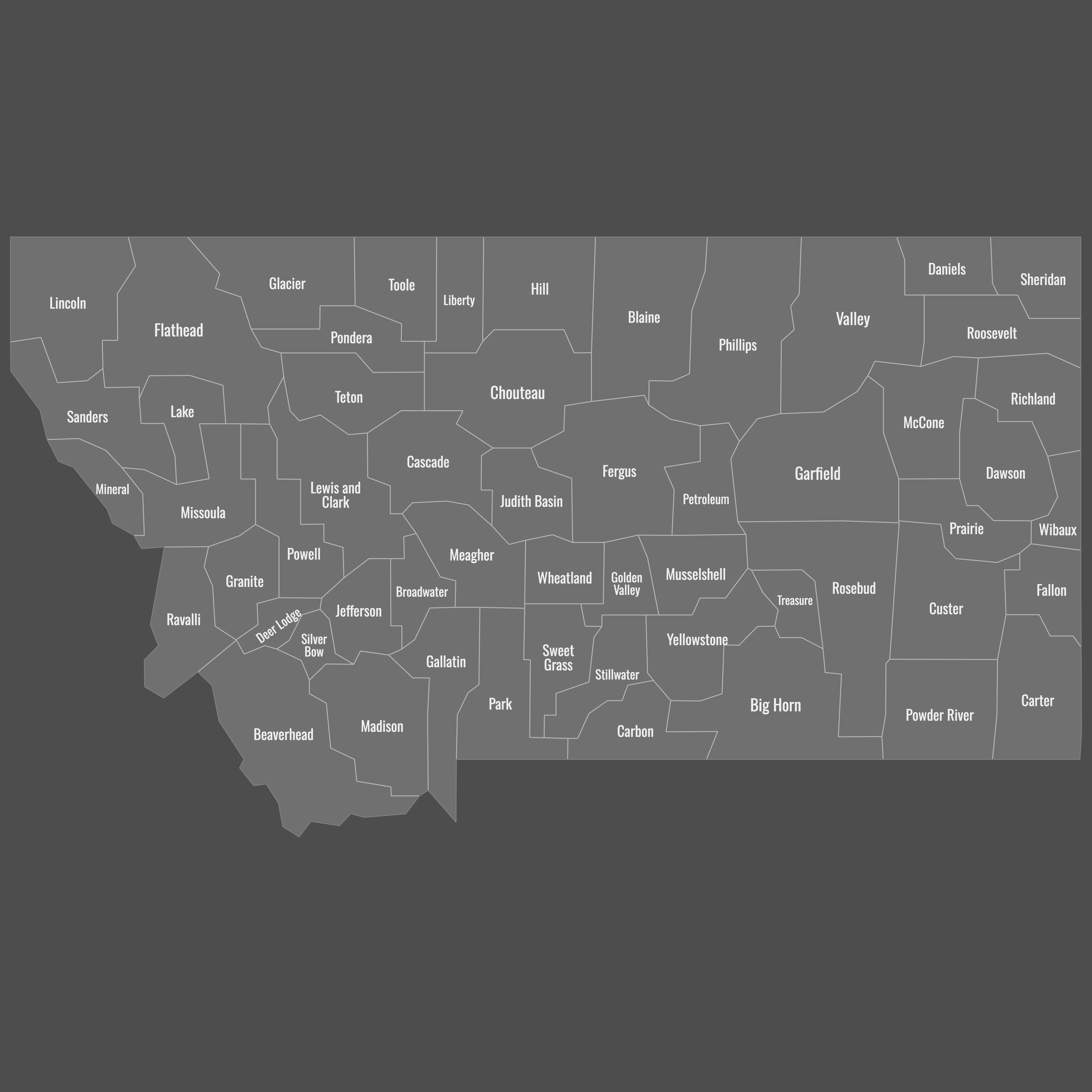 Below you can download free blank Map of Montana Counties in high resolution PNG or SVG formats suitable for printing or further editing. Most of the maps available in different color schemes and with different features (such as labels, roads or rivers). PNG maps are in 3600x3600px resolution and come with a transparent background.