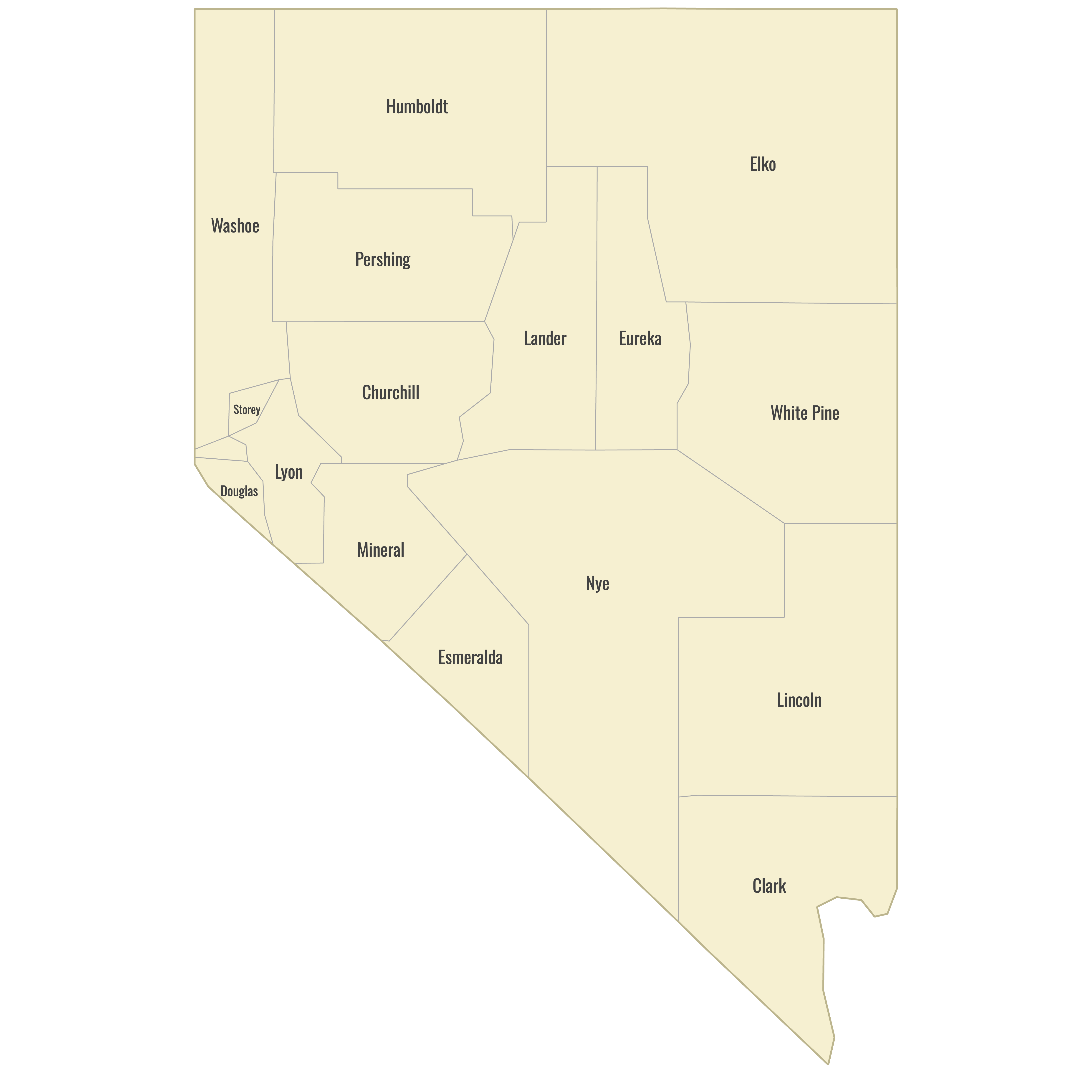 Below you can download free blank Map of Nevada Counties in high resolution PNG or SVG formats suitable for printing or further editing. Most of the maps available in different color schemes and with different features (such as labels, roads or rivers). PNG maps are in 3600x3600px resolution and come with a transparent background.