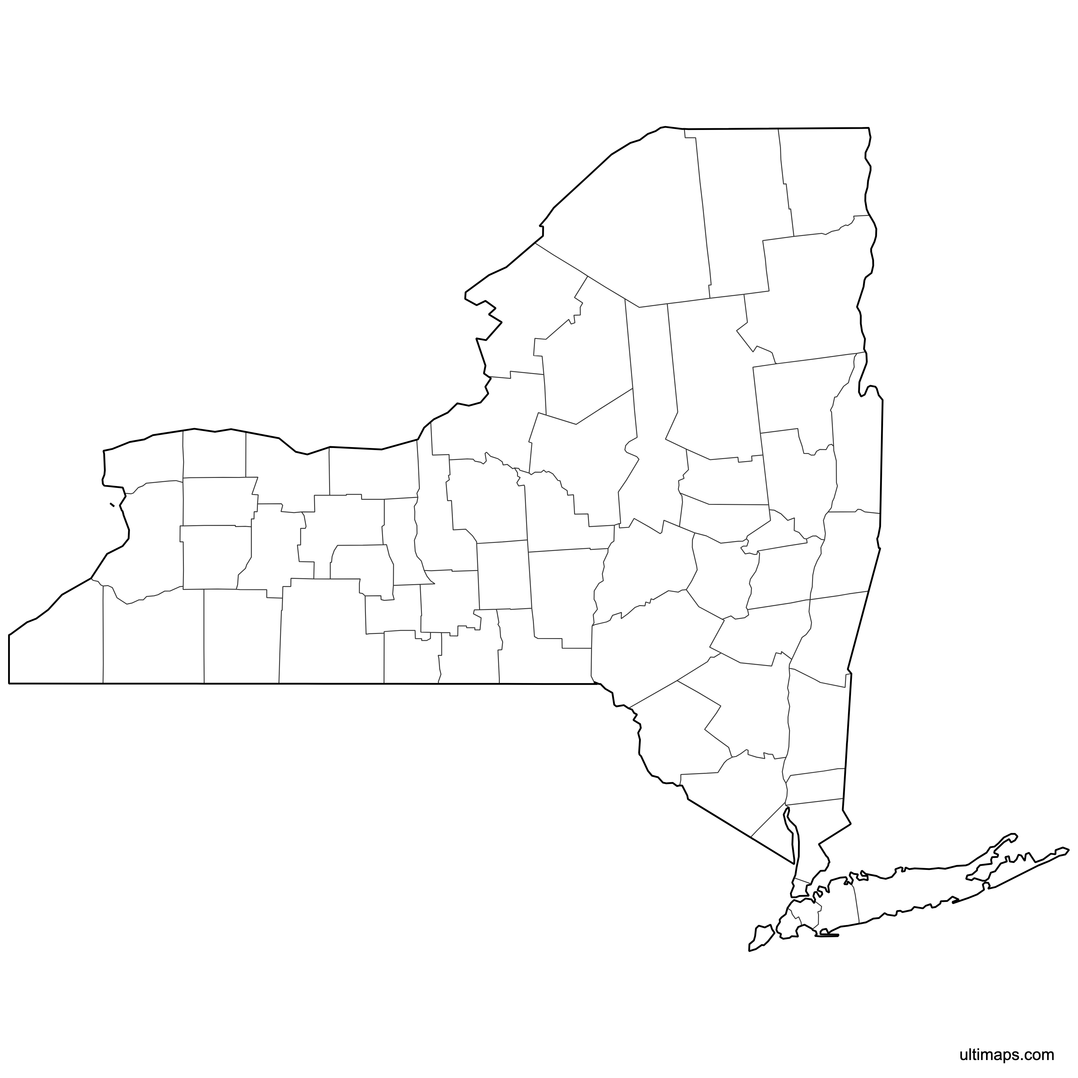 Below you can download free blank Map of New York Counties in high resolution PNG or SVG formats suitable for printing or further editing. Most of the maps available in different color schemes and with different features (such as labels, roads or rivers). PNG maps are in 3600x3600px resolution and come with a transparent background.