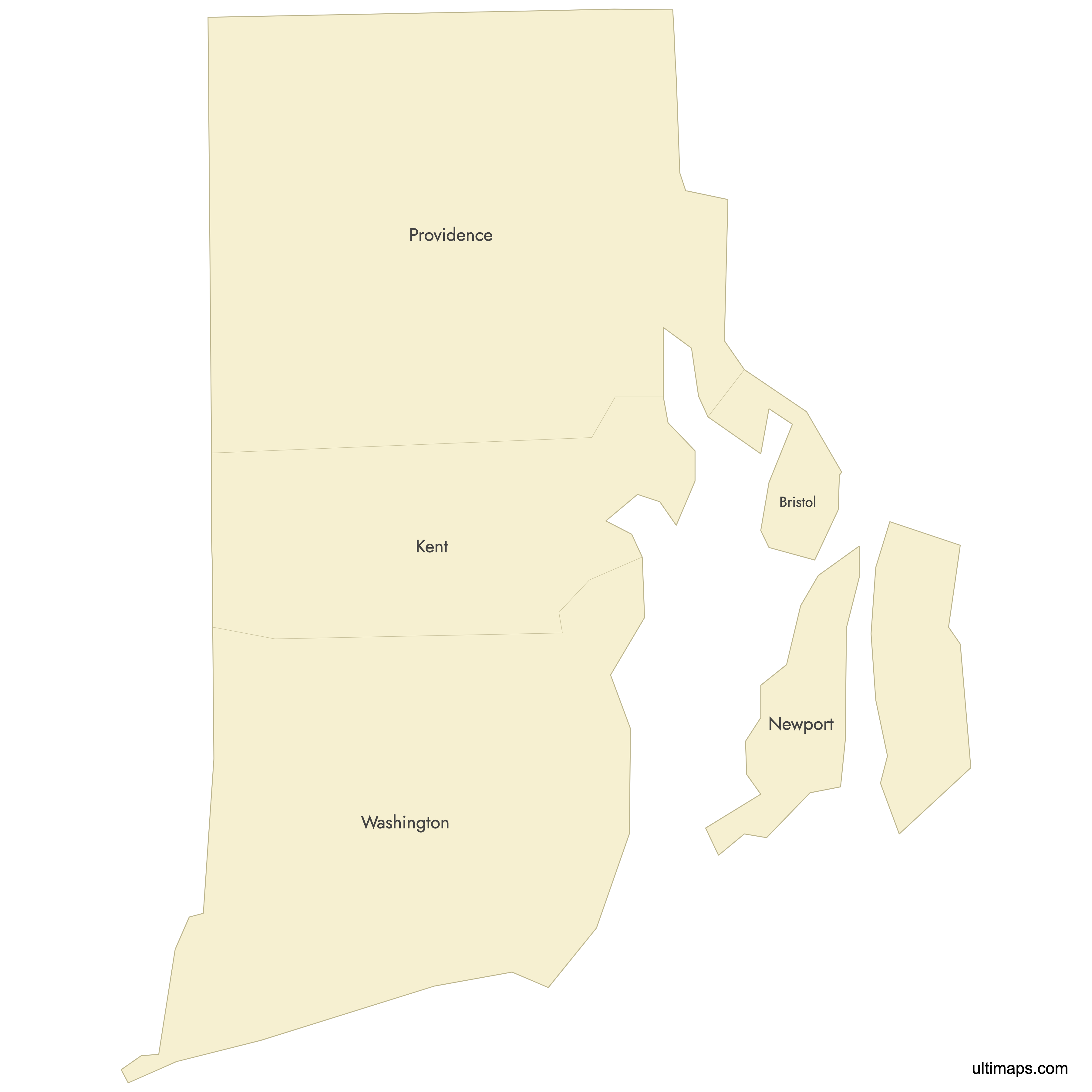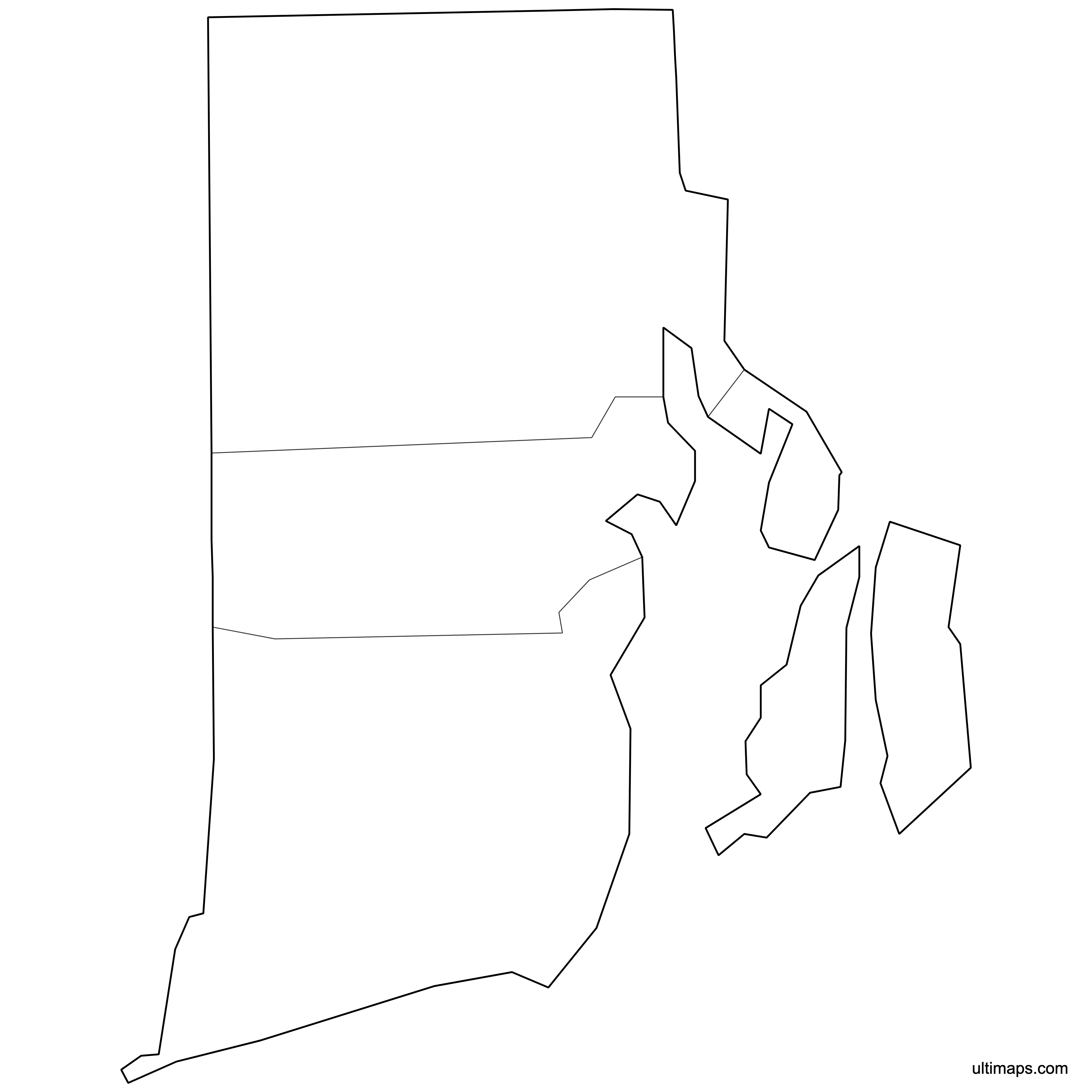 Below you can download free blank Map of Rhode Island Counties in high resolution PNG or SVG formats suitable for printing or further editing. Most of the maps available in different color schemes and with different features (such as labels, roads or rivers). PNG maps are in 3600x3600px resolution and come with a transparent background.