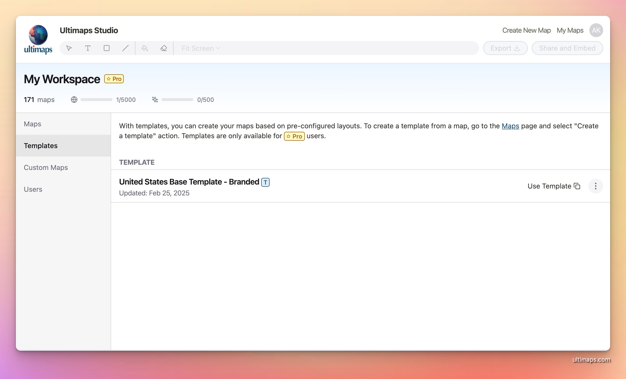 Professional accounts can now create reusable templates. If you regularly produce maps with consistent styling, branding, or layout requirements, templates save setup time for each new project.